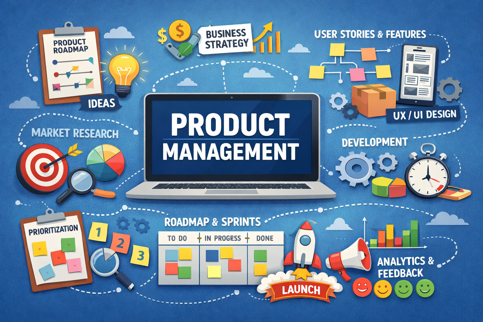Product management is the process of planning, building, launching, and improving products to meet customer needs and business goals.